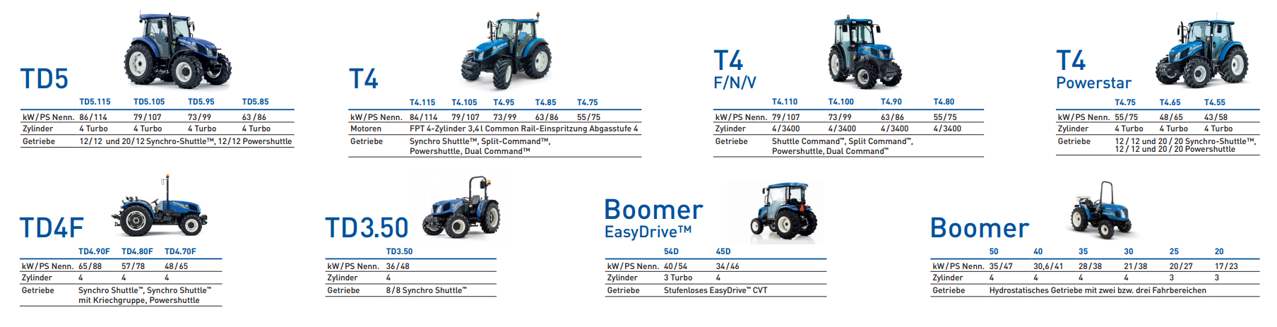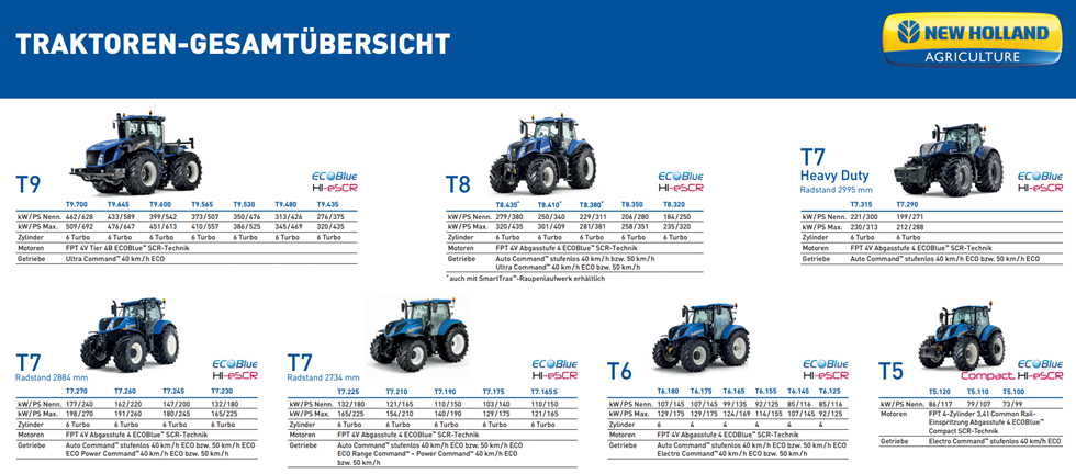 Ob nun ein Traktor für die Waldarbeit, ein Ackerschlepper mit 300 PS oder für den privaten Bereich, mit New Holland bieten wir Ihnen genau den Traktor den Sie benötigen.